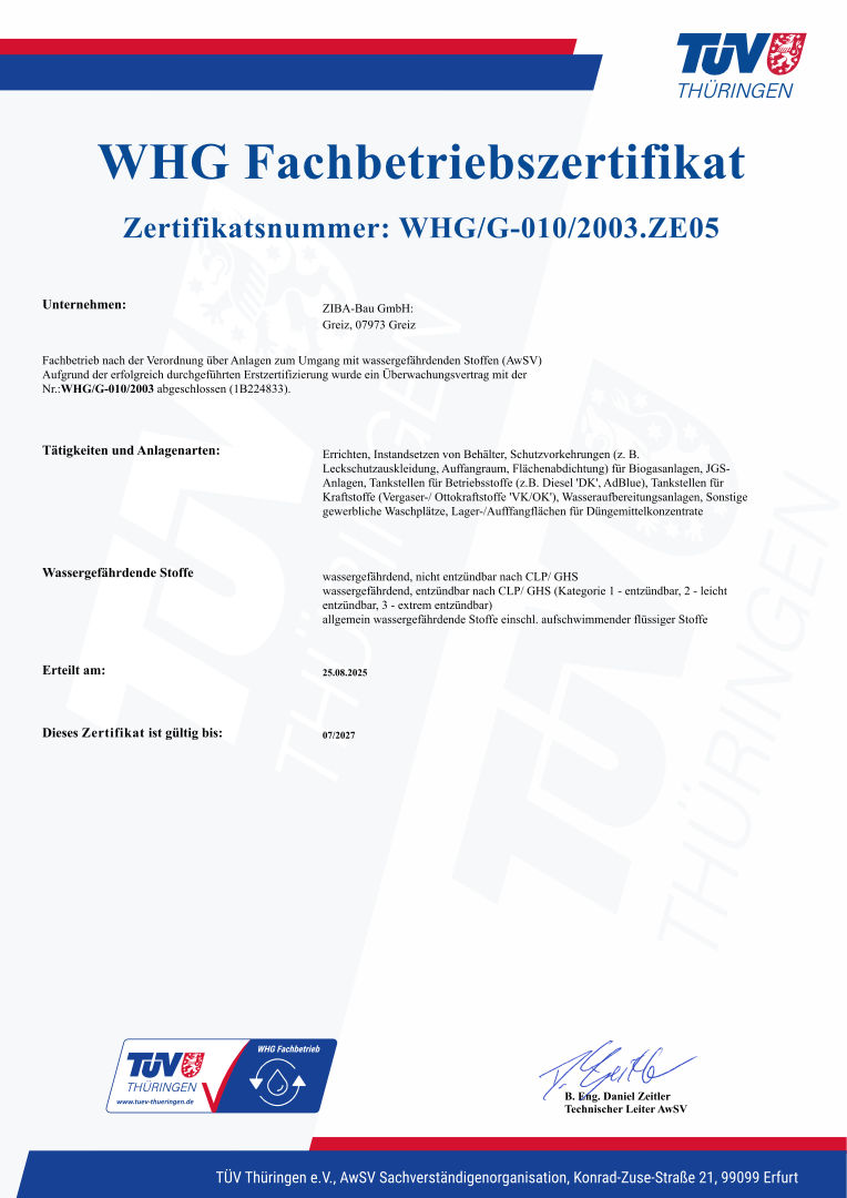 wassergefährdenden Stoffen (AwSV, fremdüberwacht durch TÜV Thüringen)